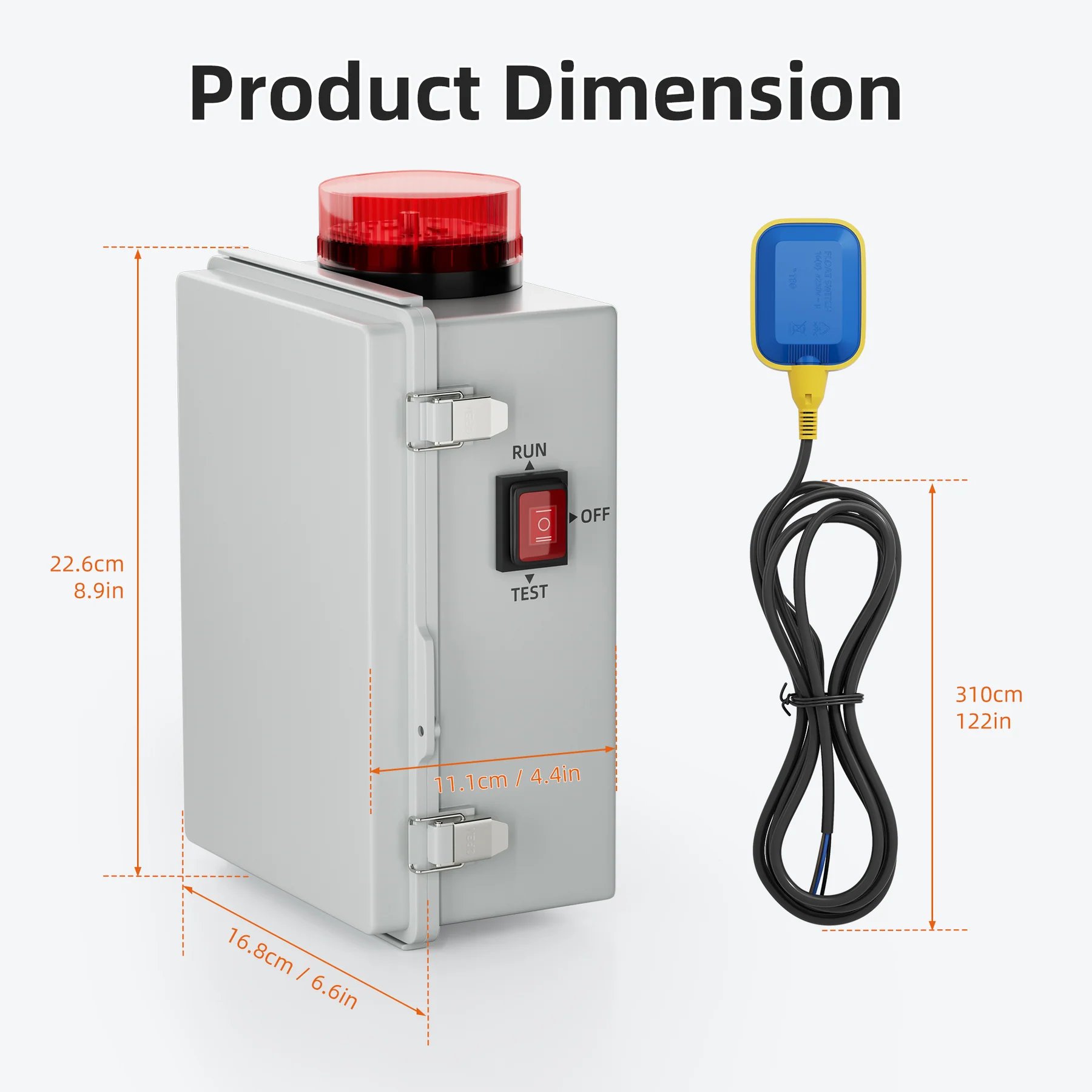 【AVERTISSEMENT DE FONDE PROPOSIQUE avec une alarme puissante】 - Cette alarme de pompe de puisard est conçue pour vous alerter rapidement des inondations potentielles. La lumière d'alarme à haut éclairage offre une alarme visuelle puissante (≥110 dB), ce qui le rend facilement perceptible même dans des environnements bruyants.
