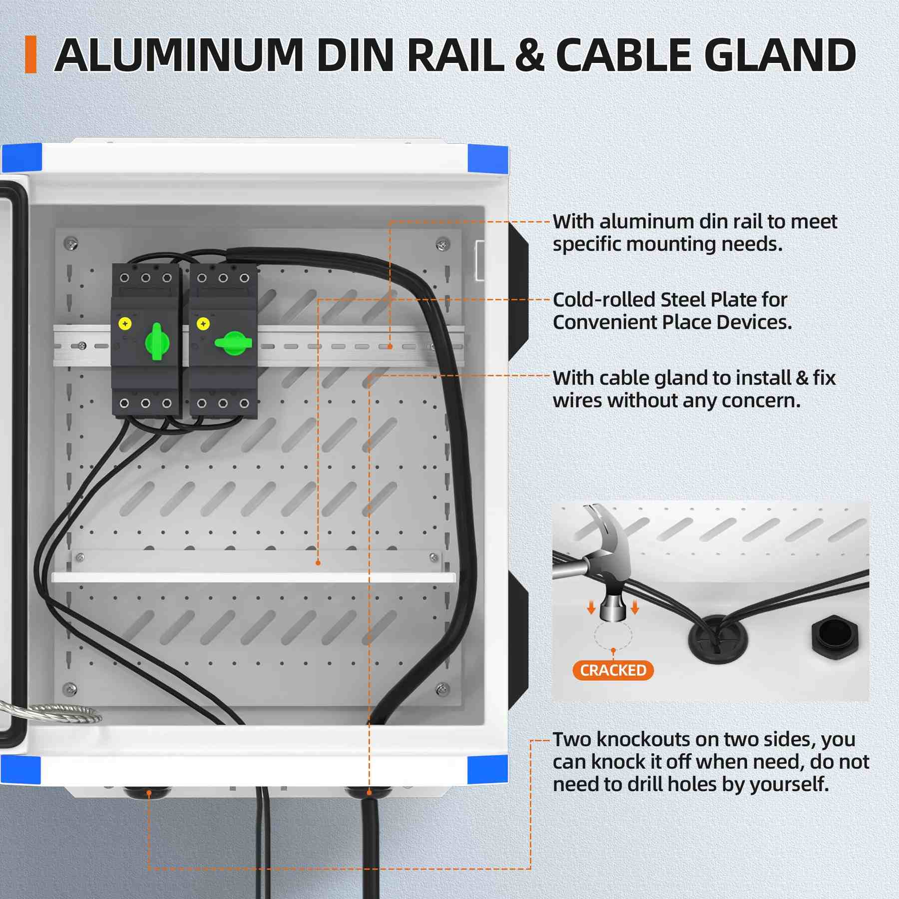 【Construction durable et résistante à la corrosion】 - Cette enceinte électrique de 19,7 "x15,7" x7,9 "est conçue pour résister aux conditions exigeantes. L'enceinte dispose d'une plaque d'acier à froid durable avec une finition à revêtement en poudre et à une finition en cristal, assure une excellente résistation à votre équipement électrique pour votre équipement électrique.